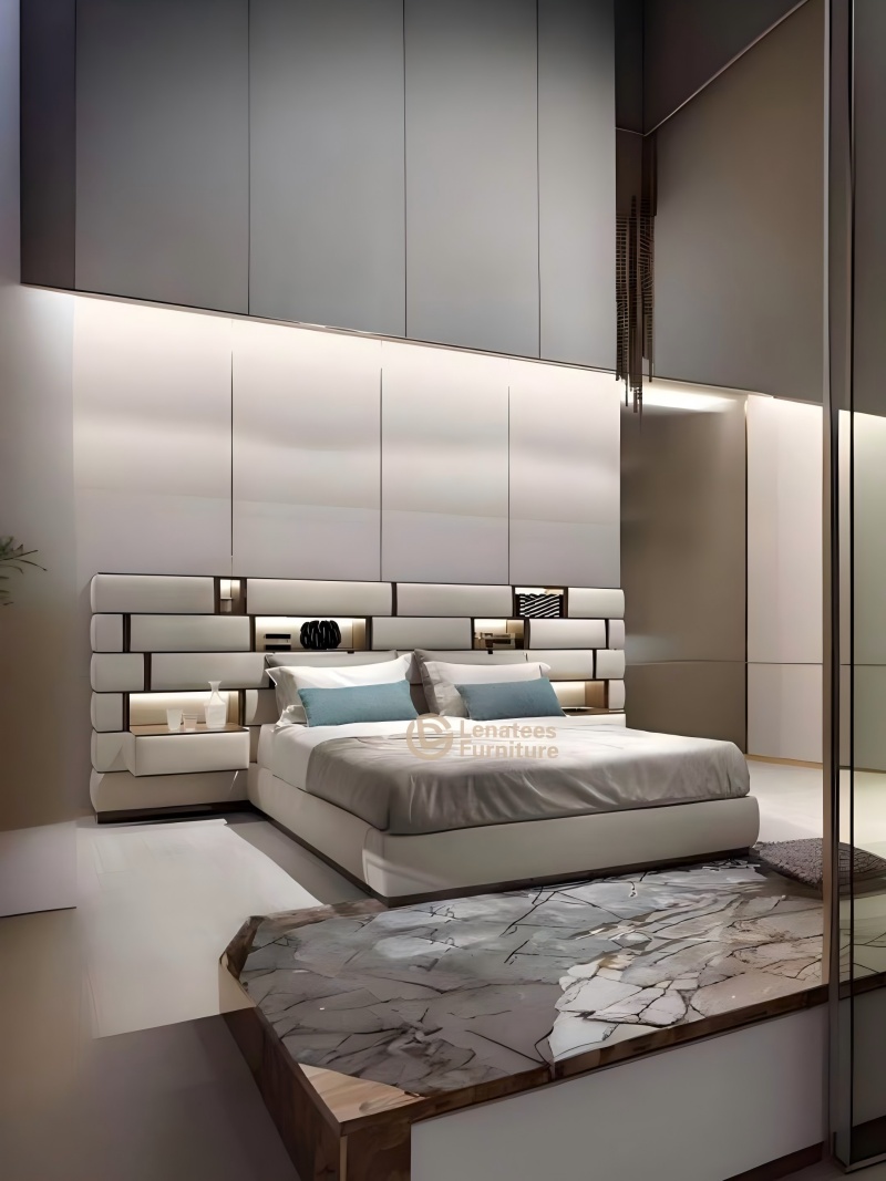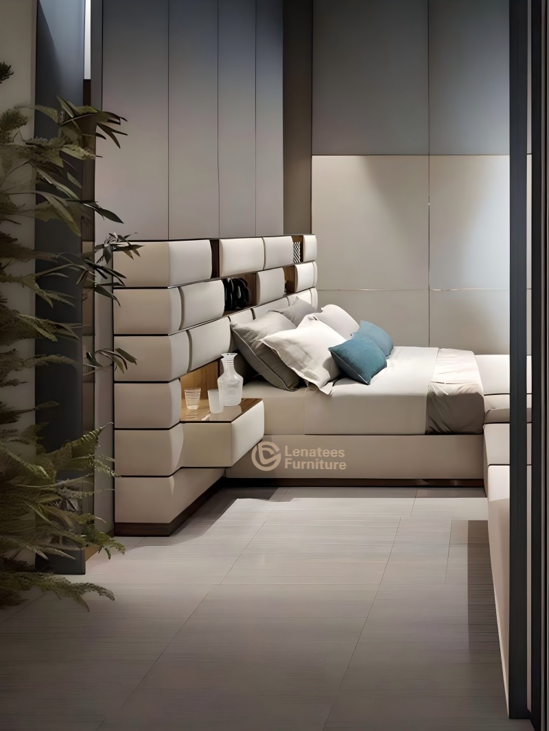নির্বাচিত 304 স্টেইনলেস স্টিল ক্রোম-ধাতুপট্টাবৃত হার্ডওয়্যারটি একটি বেডরুমের নায়ক তৈরি করতে আমদানিকৃত শীর্ষ-শস্য কাউহাইড/ভেলভেট সফট ব্যাগের সাথে মিলিত হয় যা একটি আরামদায়ক অভিজ্ঞতার সাথে শিল্পের টেক্সচারকে একত্রিত করে।