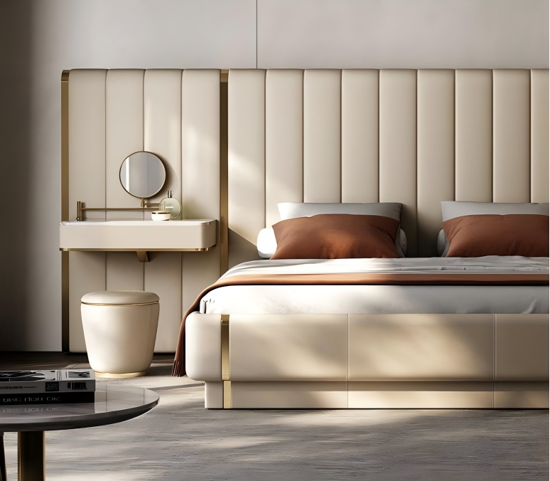উচ্চ-শেষ কাস্টমাইজেশন "হালকা বিলাসবহুল বাকল বিছানা + একই রঙের বিছানা টেবিল | আকার/রঙ কাস্টমাইজেশন সমর্থিত