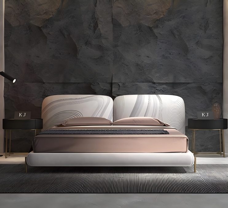 নির্বাচিত ইতালিয়ান আমদানি করা শীর্ষ-স্তর কাউহাইড, ফ্রস্টেড প্রিন্টিং প্রযুক্তি ব্যবহার করে, একটি সূক্ষ্ম ম্যাট টেক্সচার, উষ্ণ এবং ত্বক-বান্ধব, স্ক্র্যাচ-প্রতিরোধী এবং পরিধান-প্রতিরোধী এবং সহজ যত্নের জন্য উপস্থাপন করে। ত্রি-মাত্রিক কুইল্টিং ডিজাইনের সাথে মিনিমালিস্ট লাইনগুলি ইতালীয় হালকা বিলাসিতার নিম্ন-কী বিলাসবহুল নান্দনিকতার ব্যাখ্যা করে। হেডবোর্ডের 45 ° গোল্ডেন টিল্ট কোণটি এরগোনমিক, সুতরাং আপনি দীর্ঘ সময় ধরে ঝুঁকলেও আপনি ক্লান্ত বোধ করবেন না।