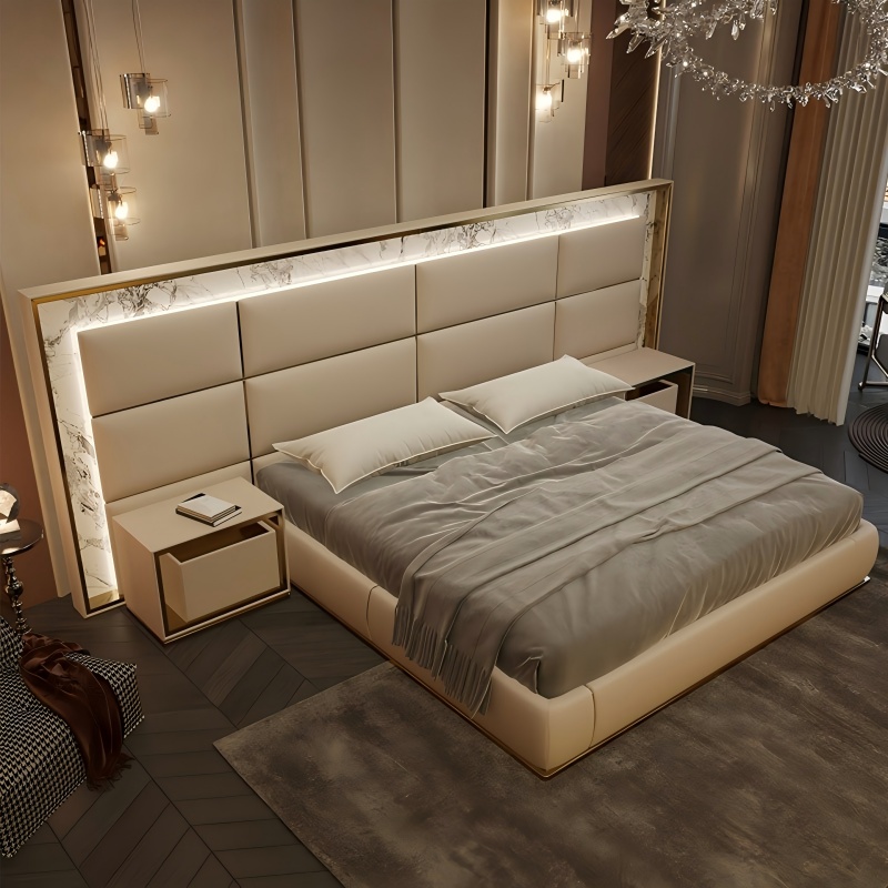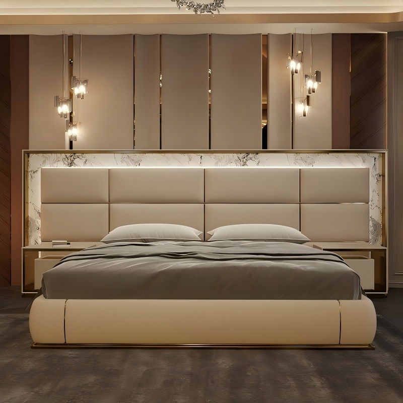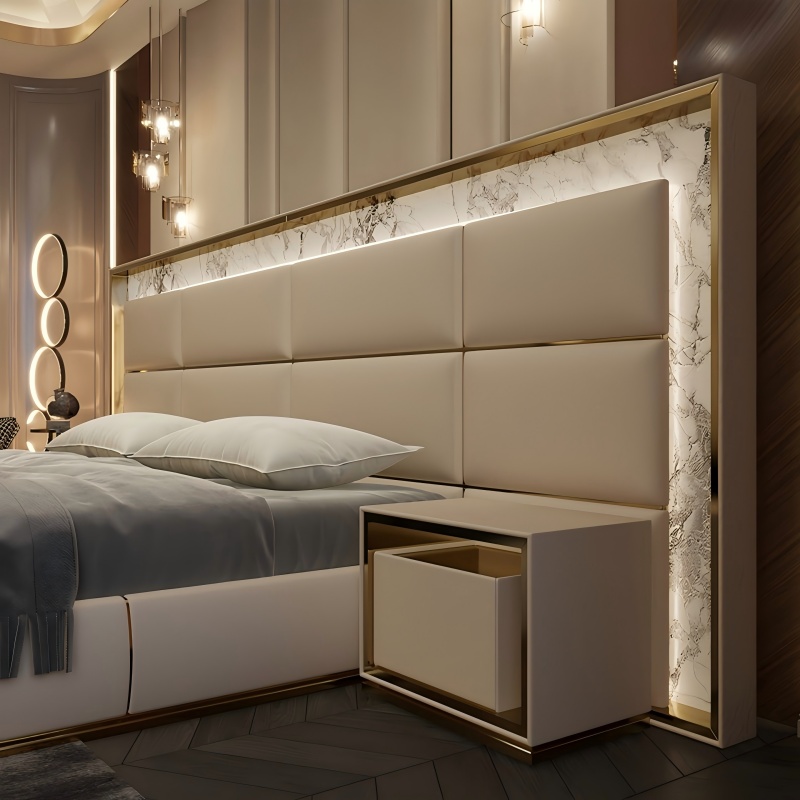 অন্তর্নির্মিত ওয়্যারলেস চার্জিং সহ মার্বেল বেডসাইড, প্রযুক্তি এবং বিলাসবহুলের একটি সিম্বিওসিস "